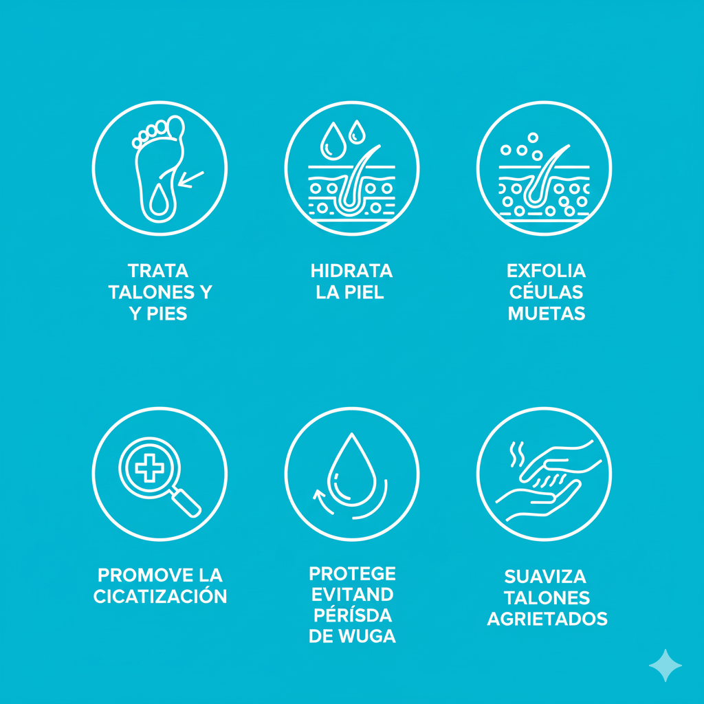 Con Sus ingredientes principales como Urea, Sales de Epson y Aceites Esenciales