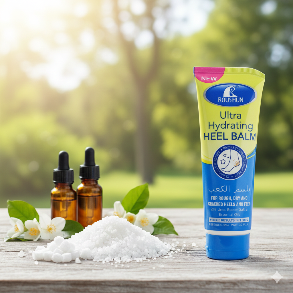¡Dile adiós a los pies secos y doloridos! Con Sus ingredientes principales como 25% Urea, Sales de Epsom y Aceites Esenciales, El Bálsamo Ultra Hidratante para Talones de Roushun es tu tratamiento intensivo para restaurar la suavidad de la piel.